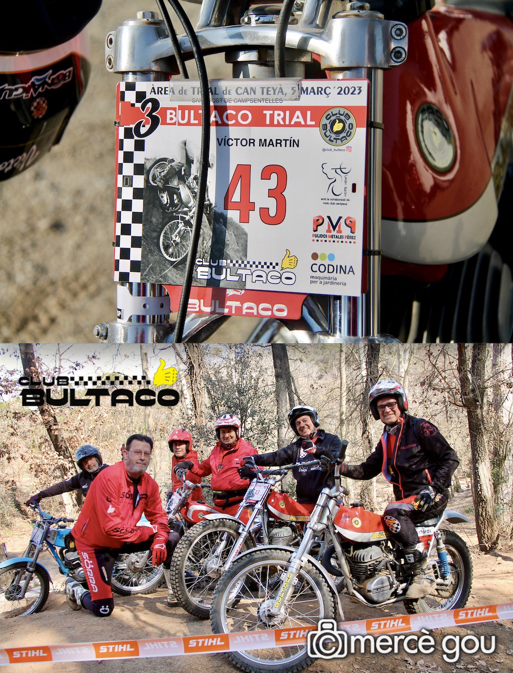 A Oriol Miró, al frente del CLUB BULTACO, le destacan las ganas e interés que pone en cada organización del Trial Bultaco y en cada evento, así como su plena involucración por transmitir el sentimiento hacia esta marca mítica. Porque más allá de formatos innovadores, avances tecnológicos o artificios espectaculares, lo relevante es que, cuando finaliza el evento, los asistentes sentimos que hemos invertido bien nuestro tiempo, que nos ha aportado valor y satisfacción; pero en este 3er Trial Bultaco 2023 le noté «incómodo» con los inscritos que hubo.