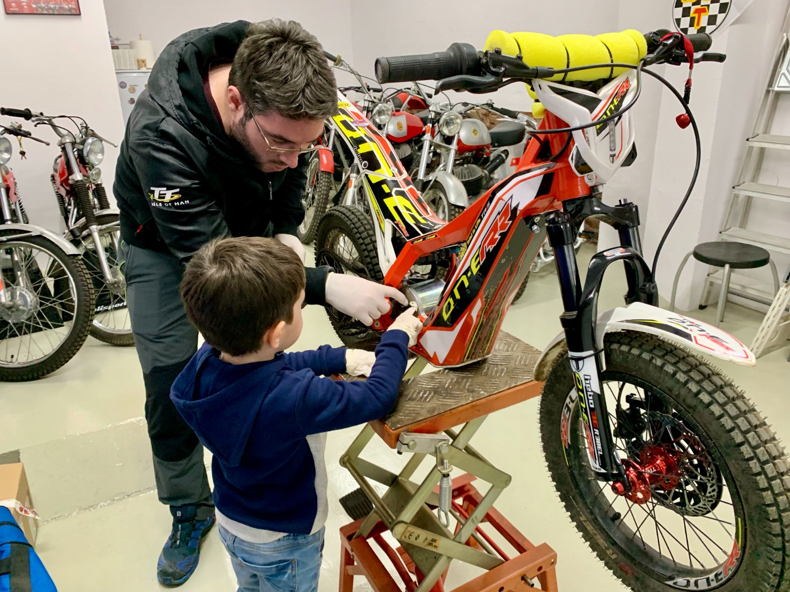 301.- Poc més de 48 hores després del dia de Reis; algunes joguines pendents d’esbrinar com funcionen, però ell, amb l’aita, entretingut amb el manteniment de la seva moto.