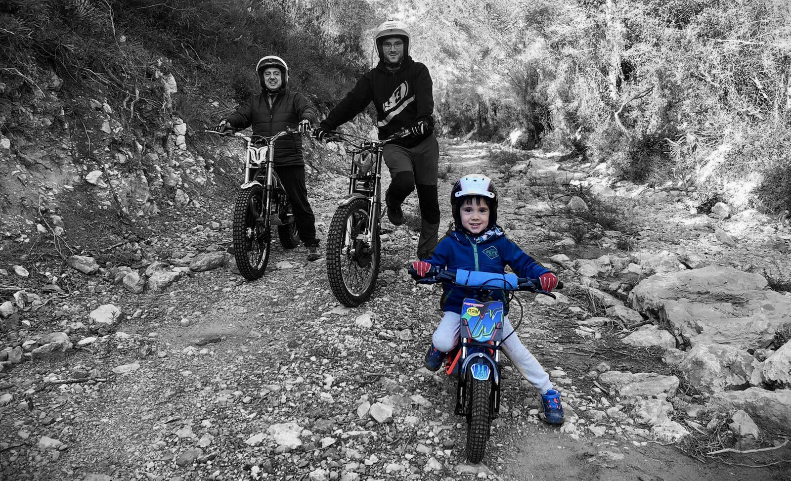 El passat diumenge 20 de desembre de 2020 vam fer la primera sortida a la muntanya, amb les motos de Trial, nét, pare i avi.