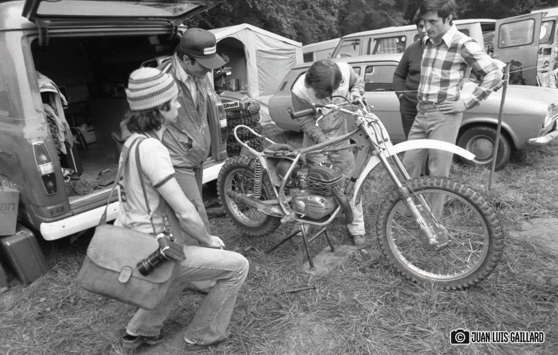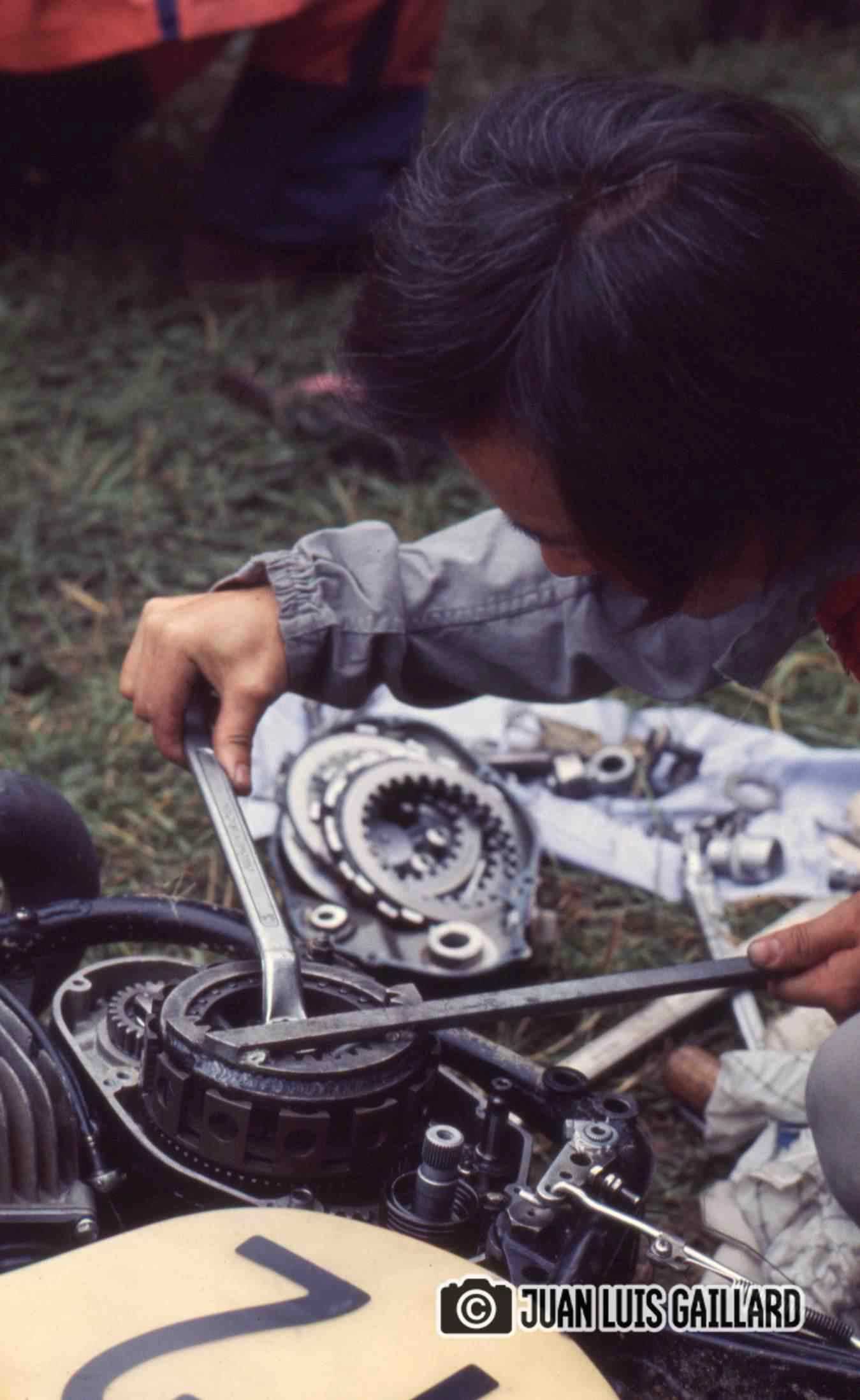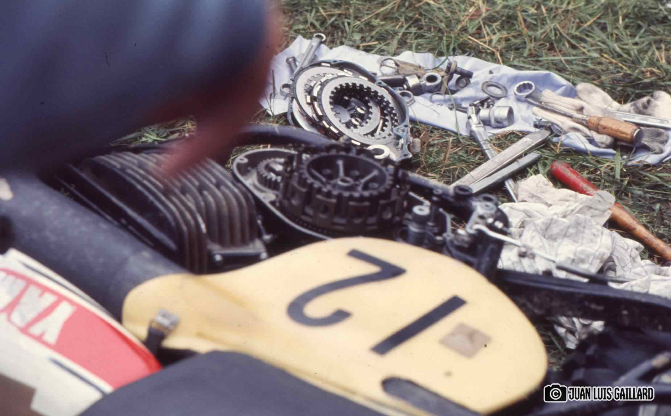 A Juan Luis Gaillard no le entusiasmaba especialmente desplazarse al extranjero para realizar el seguimiento fotográfico de las pruebas celebradas fuera de nuestro país. Prefería cubrir las competiciones nacionales, donde el contacto con pilotos y equipos era más cercano y el entorno le resultaba más familiar. Sin embargo, en esta ocasión sí contamos con sus imágenes del Gran Premio de Francia, correspondiente al Campeonato del Mundo de 500cc.