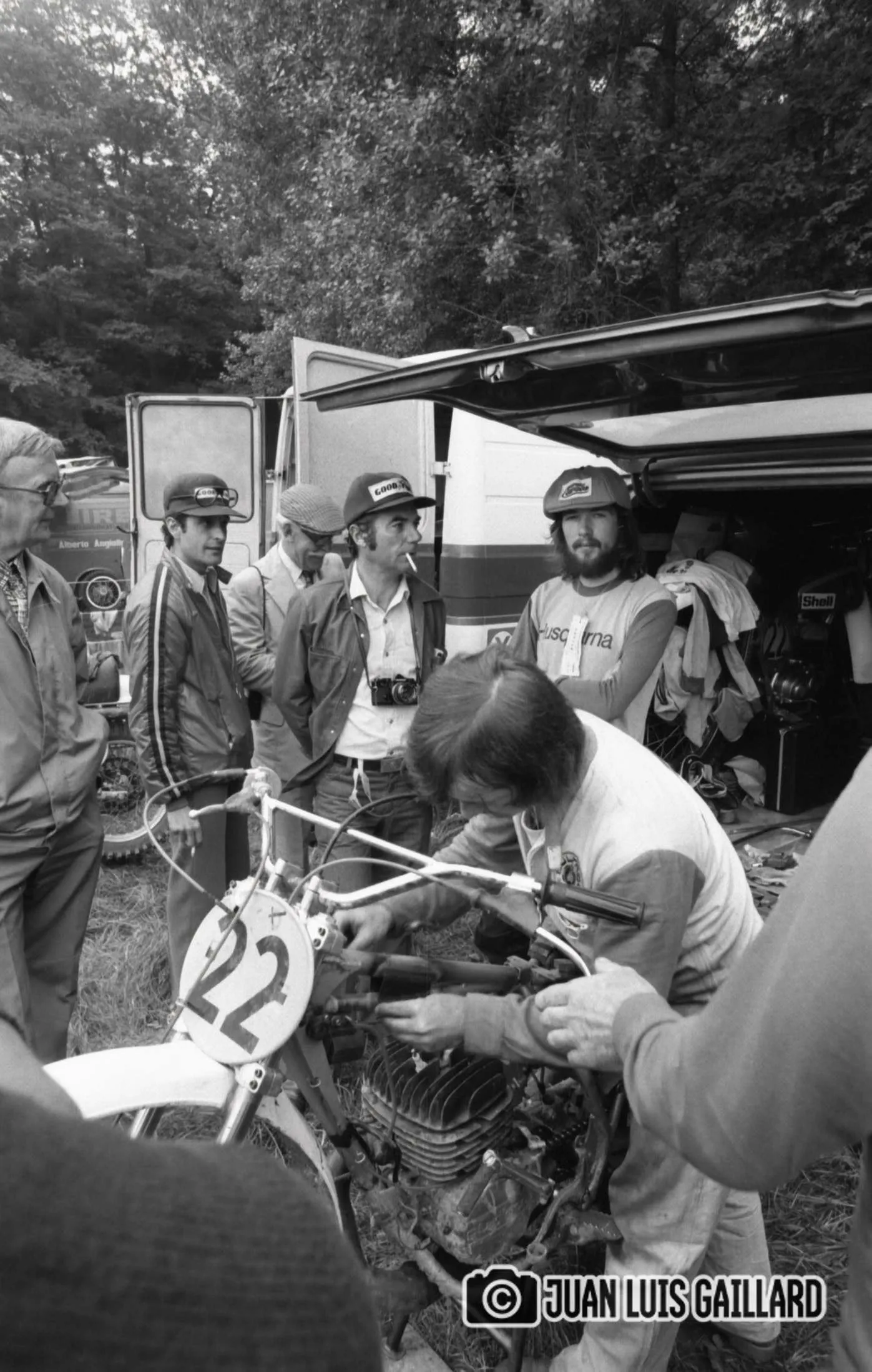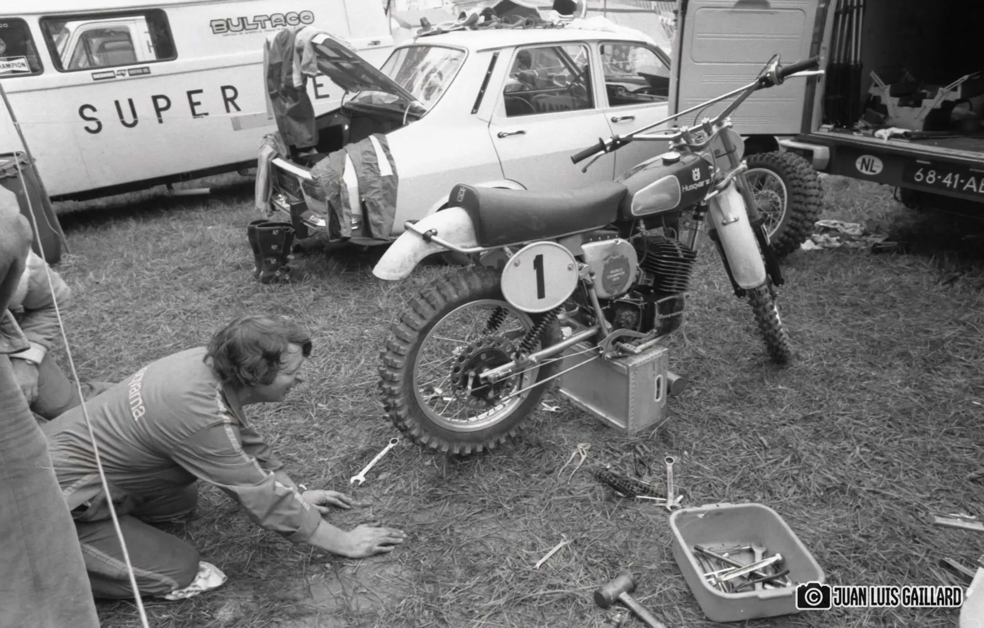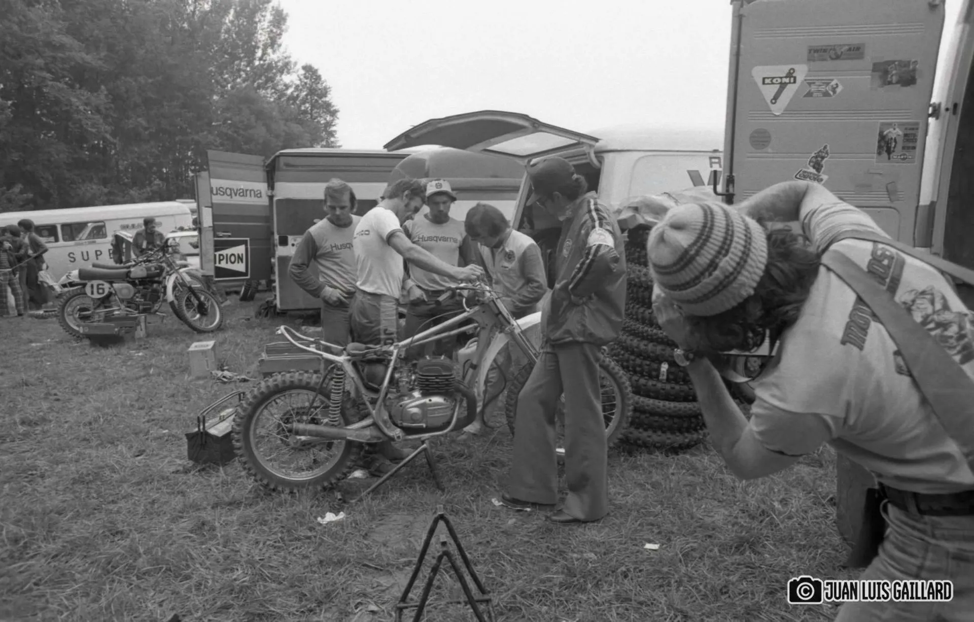 A Juan Luis Gaillard no le entusiasmaba especialmente desplazarse al extranjero para realizar el seguimiento fotográfico de las pruebas celebradas fuera de nuestro país. Prefería cubrir las competiciones nacionales, donde el contacto con pilotos y equipos era más cercano y el entorno le resultaba más familiar. Sin embargo, en esta ocasión sí contamos con sus imágenes del Gran Premio de Francia, correspondiente al Campeonato del Mundo de 500cc.