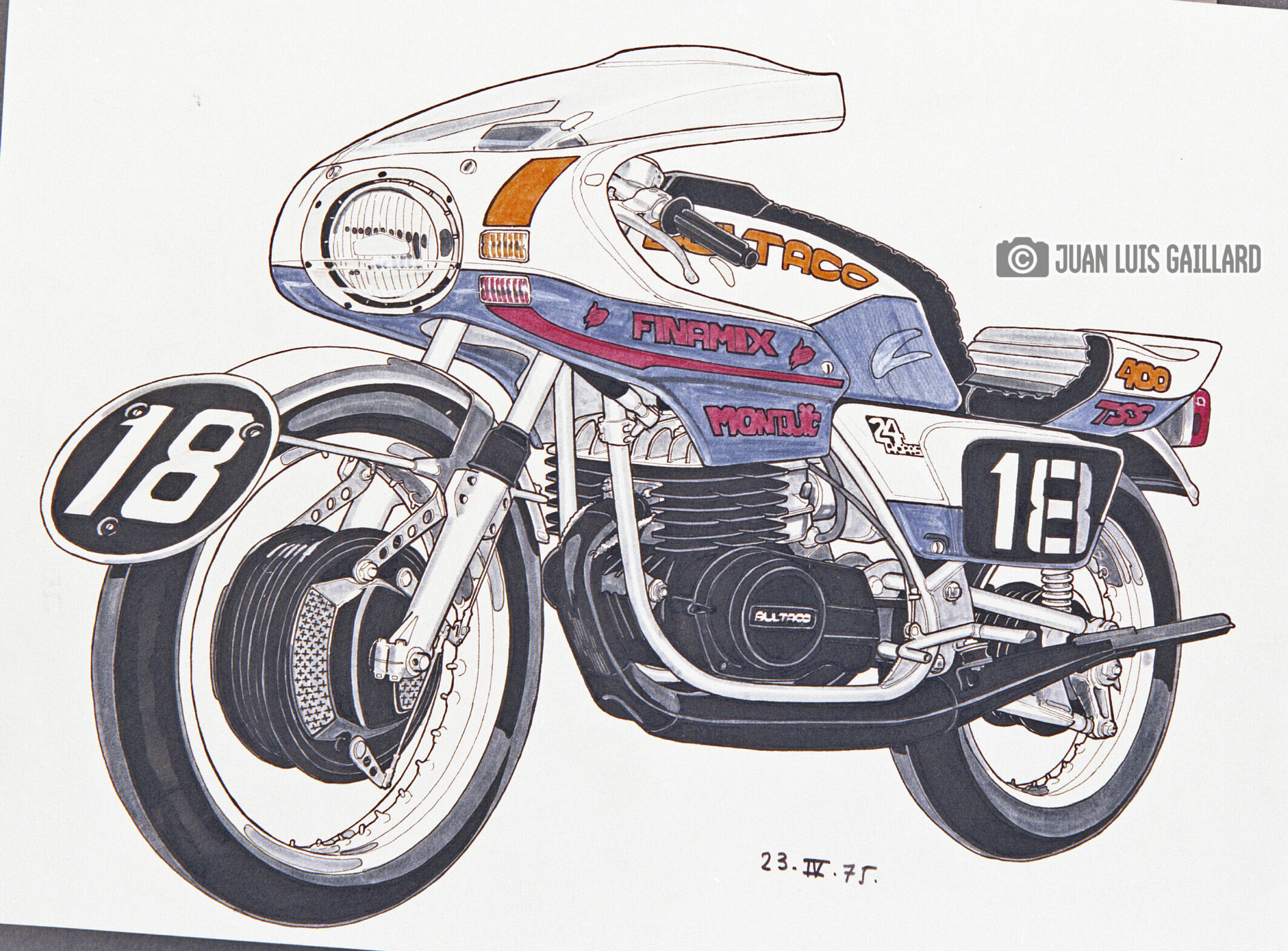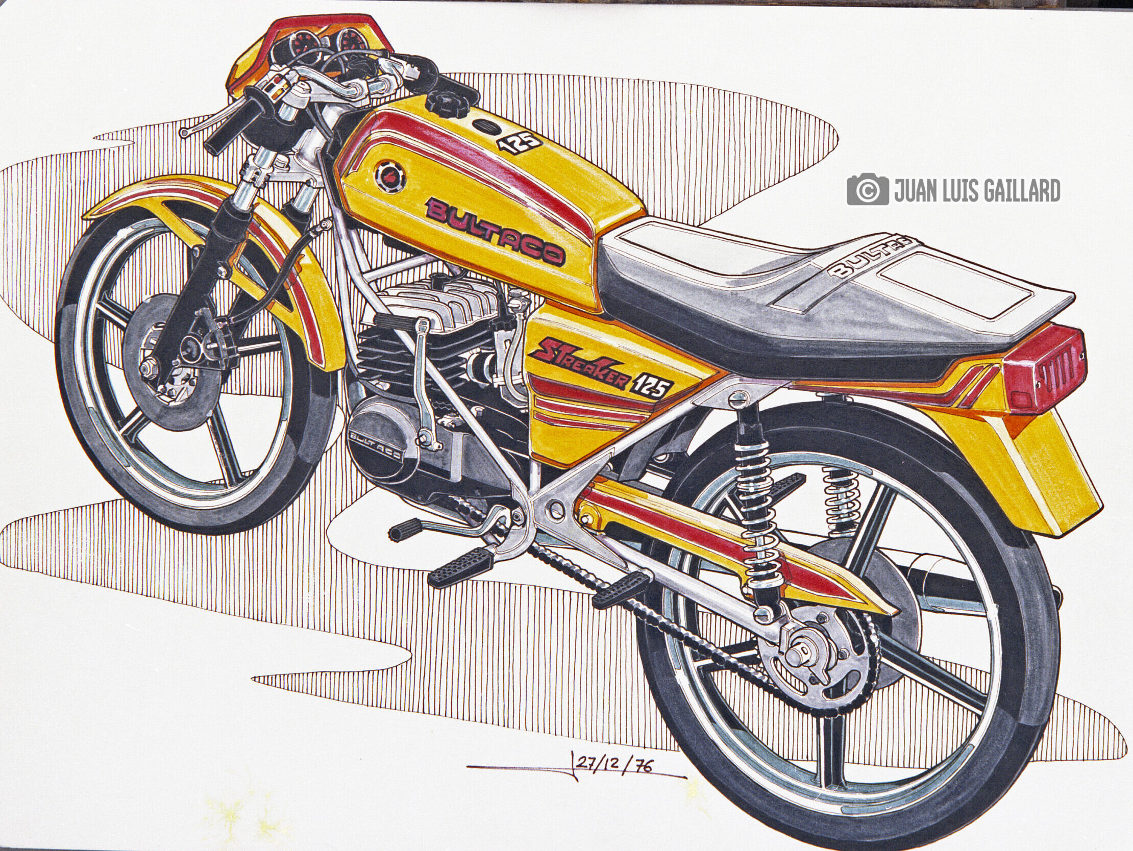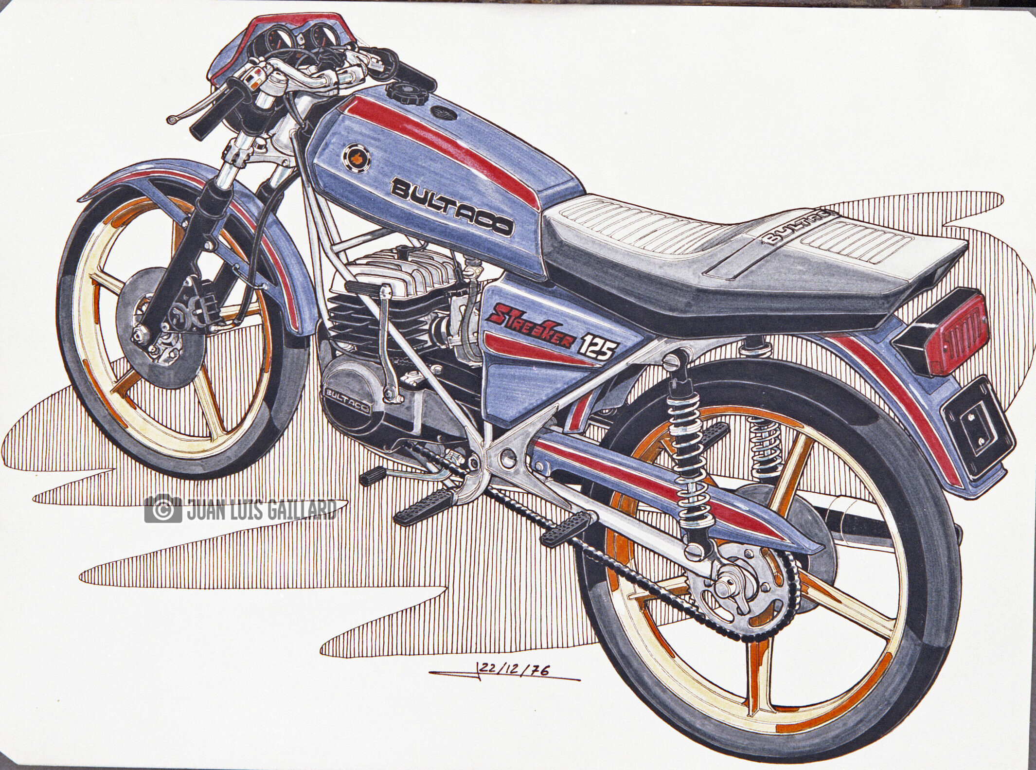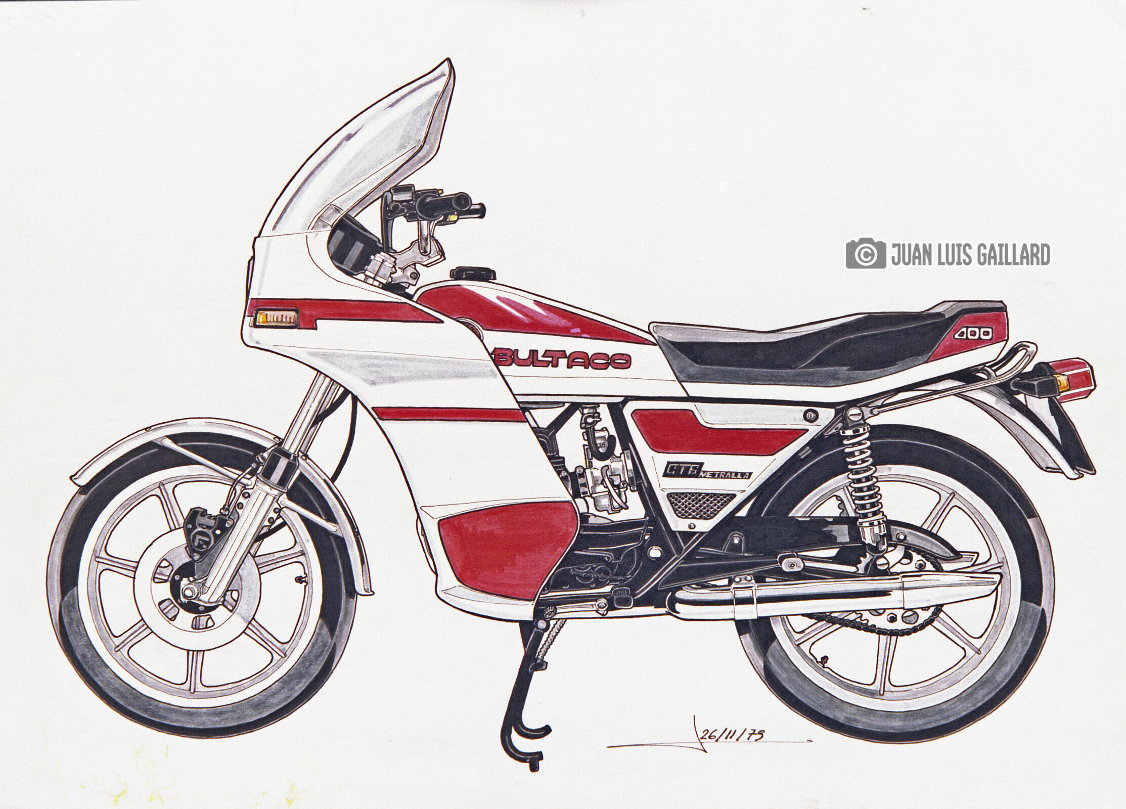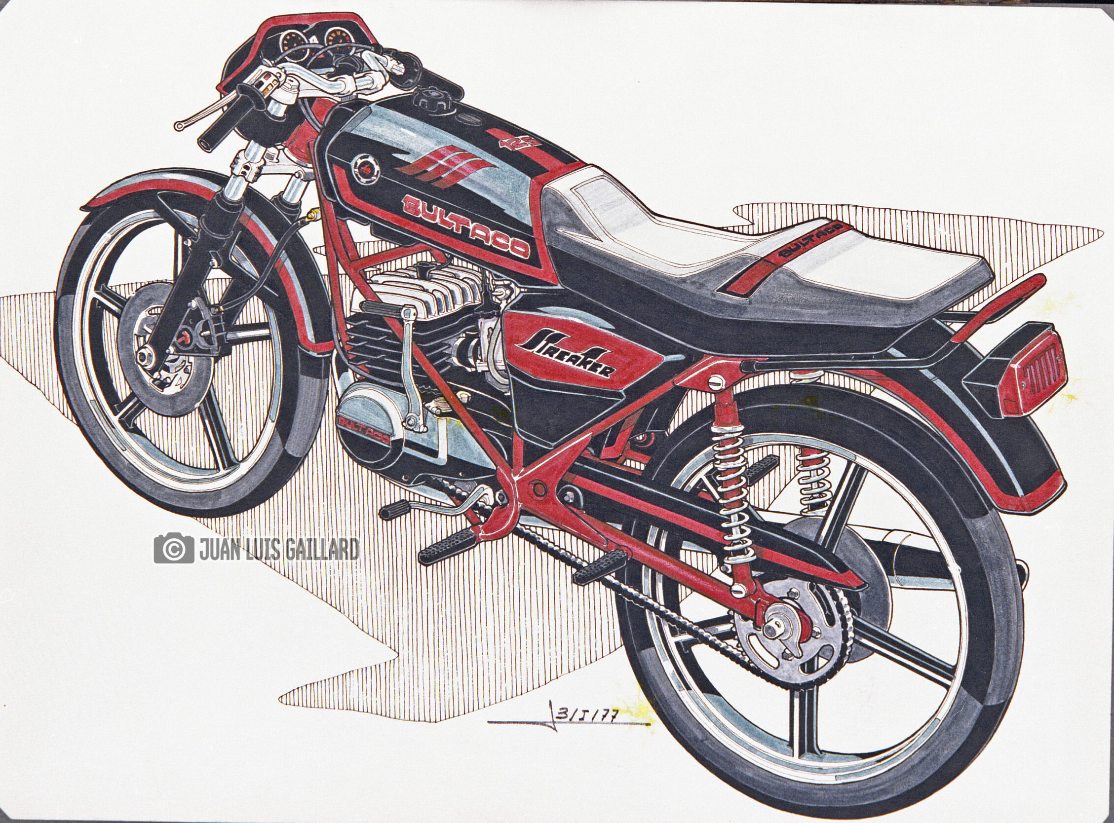 Su labor se centraba en la creación de diseños y reproducciones de modelos icónicos, contribuyendo a mantener viva la esencia estética y técnica de la marca española. Entre sus obras más reconocidas se encontraban los dibujos de los modelos Streaker, Montjuic, Sherpa y Metralla, cada uno de ellos representando una faceta distinta del legado de Bultaco: desde la velocidad y la competición hasta la resistencia y la innovación.
